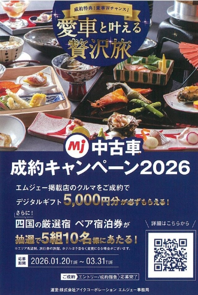 あっと言う間に2月もスタート! 今月も2月2日(月)〜28日(土)までの期間中に中古車ご成約の皆様へ、ご納車整備時「エンジンオイル・オイルエレメント・ワイパーゴム・バッテリー」を、新品部品と交換さ...
