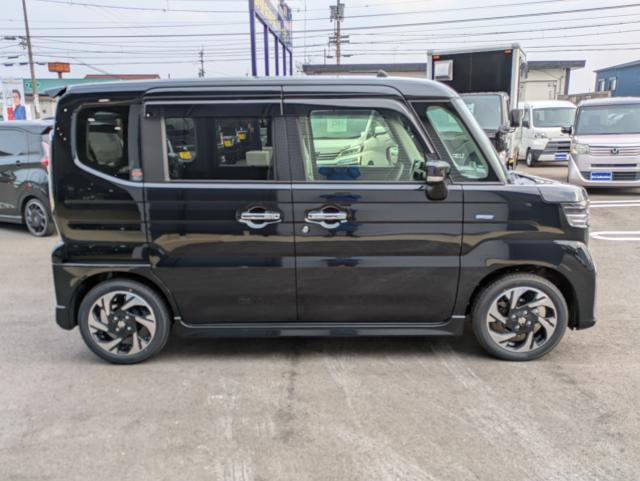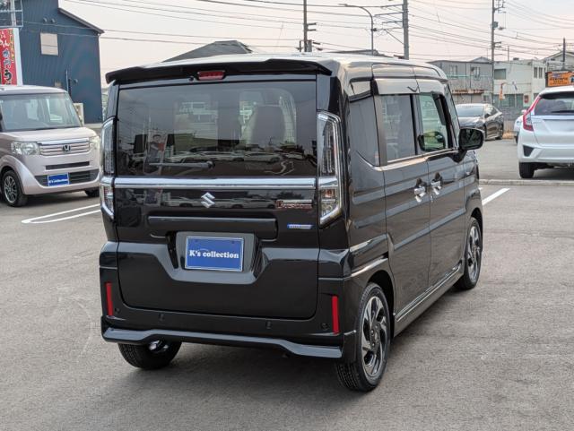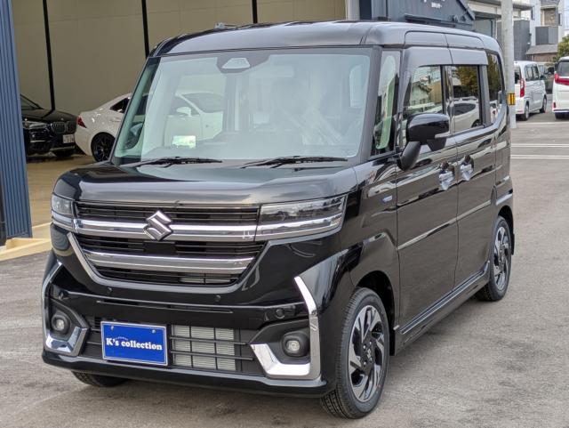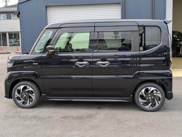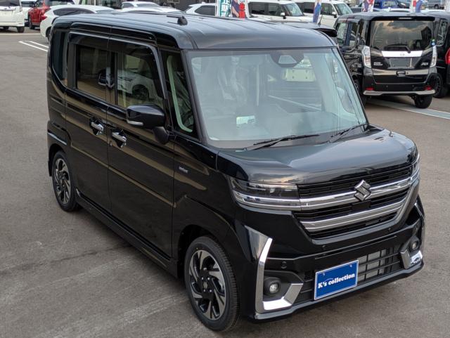 人気のスペーシアカスタムの届出済み未使用車HVXSのブラックが入庫しました。