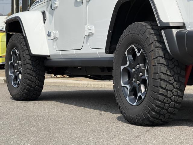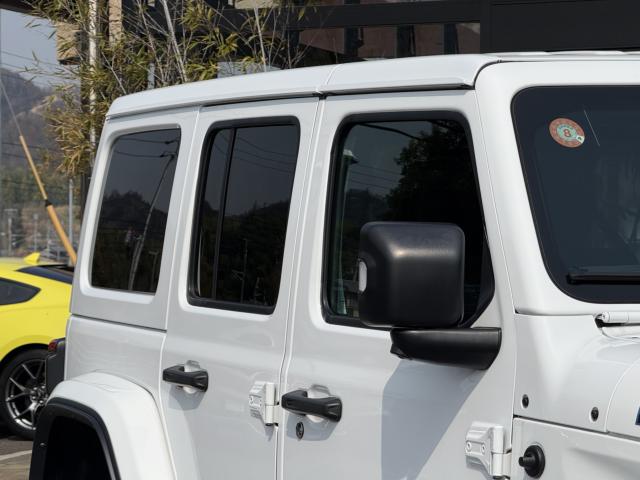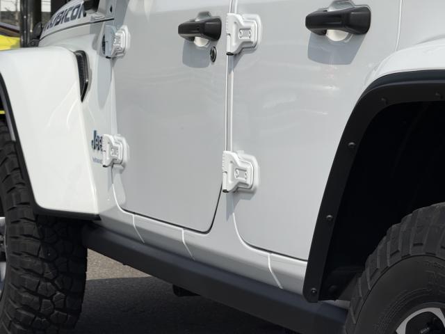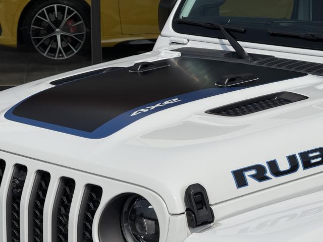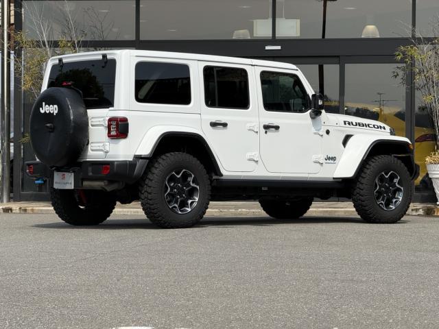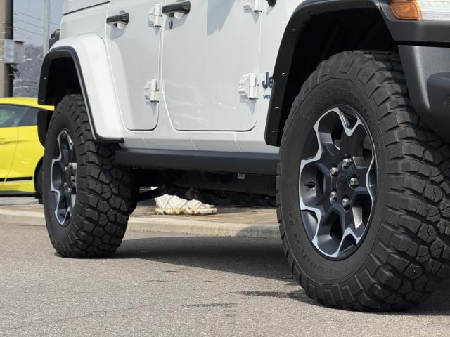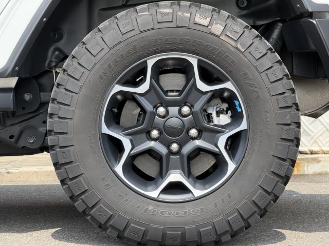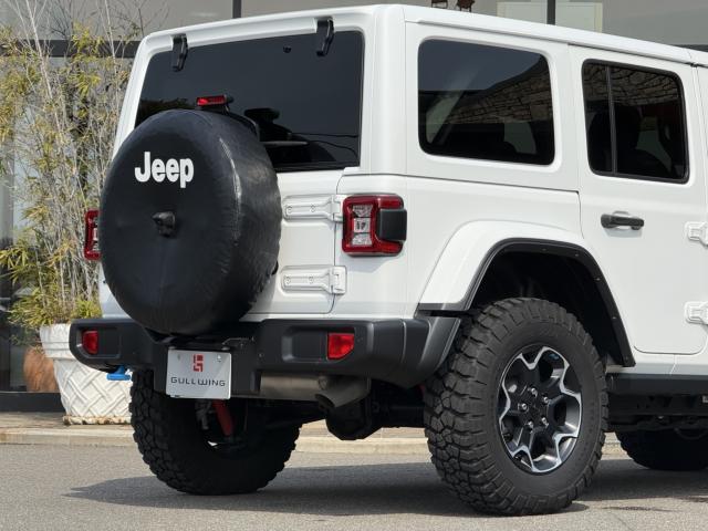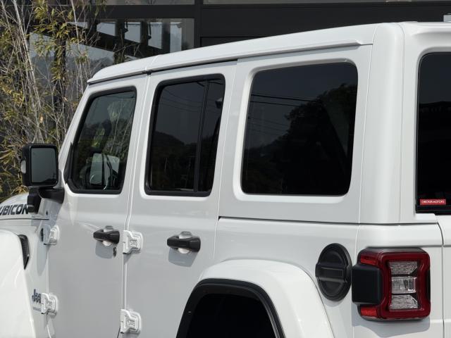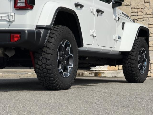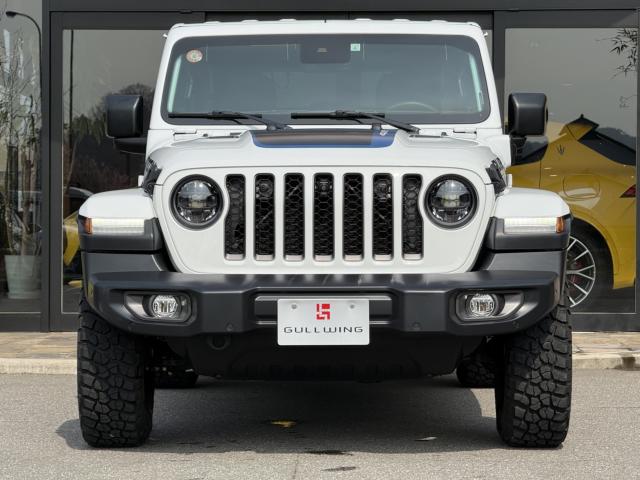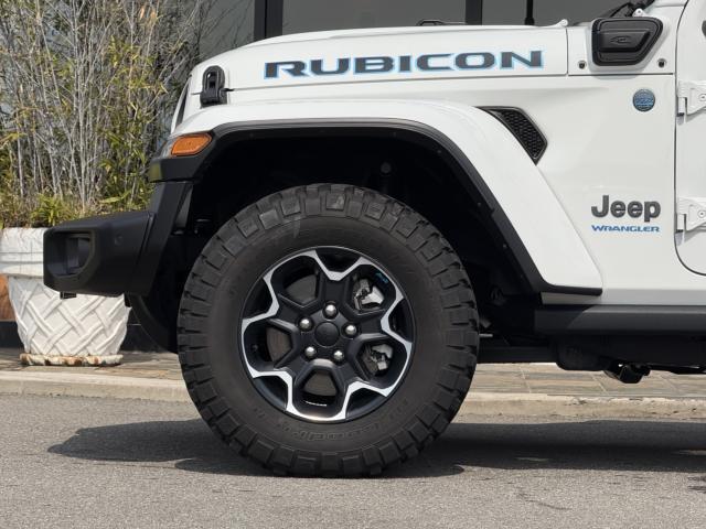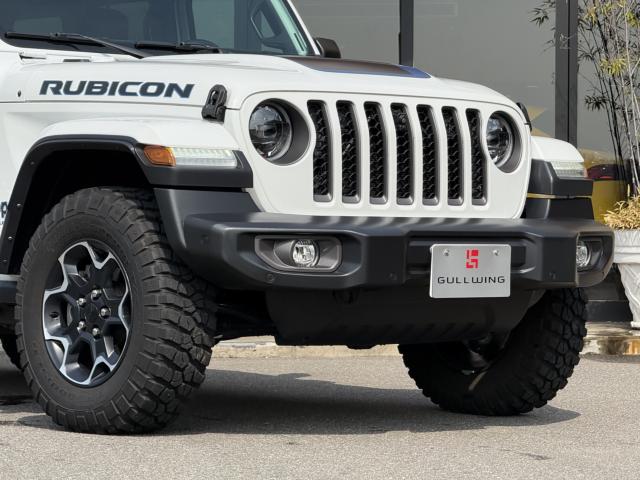 フロントプロテクションフィルム プラグインハイブリッド ブラックレザーシートヒーター&ステアリングヒーター UコネクトナビTV( AppleCarPlay&AndroidAuto対応) 純正17インチAW マッド&テレインタイヤ スマートキー 前後カメラ&パークアシスト アダプティプクルーズコントロール LEDヘッドライト ルビコン専用デカール ロックレール