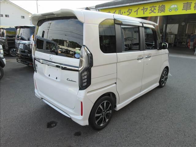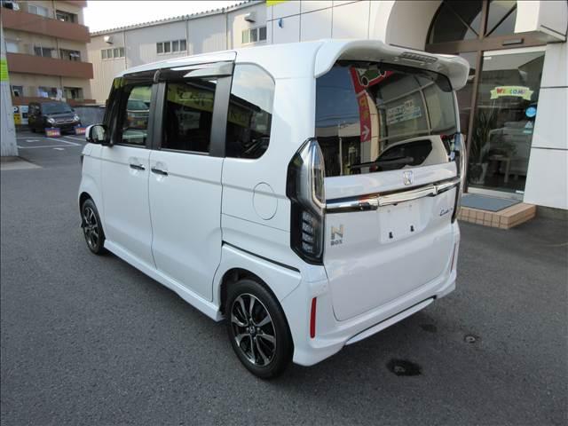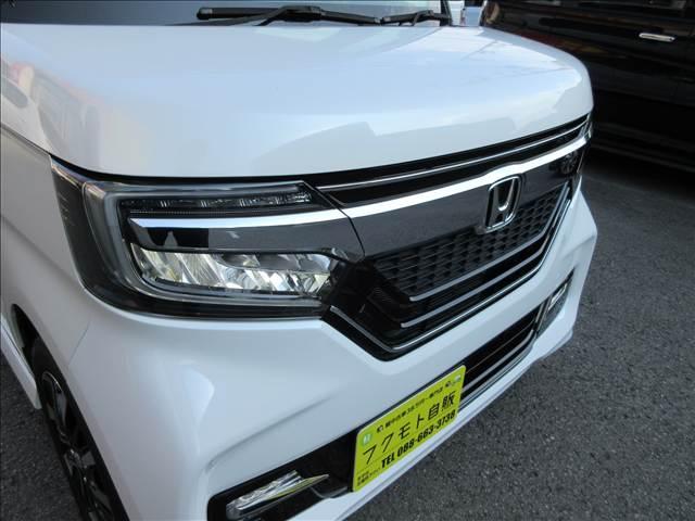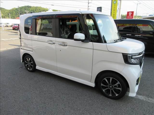 人気のN-BOXカスタム入庫致しました!ナビ・フルセグTV・CD/DVD再生・Bluetooth・USB・LEDライト・Rカメラ・追突軽減ブレーキ・左側電動スライド・ETC・前後ドラレコ・シートヒーターなど装備も充実してます