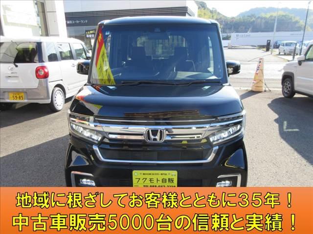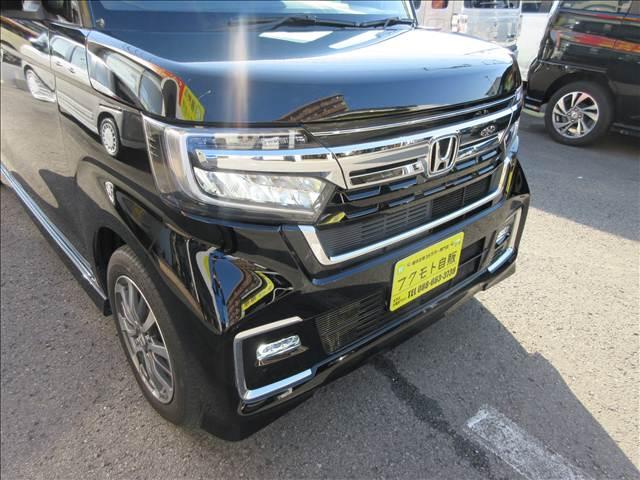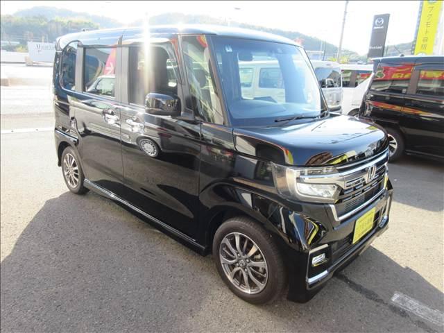 人気のN-BOXカスタム入庫致しました!純正8インチナビ・フルセグTV・DVD再生・Bluetooth・Rカメラ・LEDライト・追突軽減ブレーキ・両側電動スライド・電子パーキング・ETC・前後ドラレコなど装備も充実してます