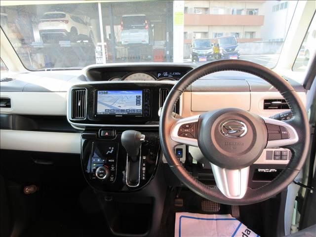 人気のムーヴキャンバス入庫致しました!ナビ・ワンセグTV・CD再生・Bluetooth・LEDライト・ETC・追突軽減ブレーキ・両側電動スライド・前後ドラレコ・全方位モニター・ステリモなど装備も充実しております
