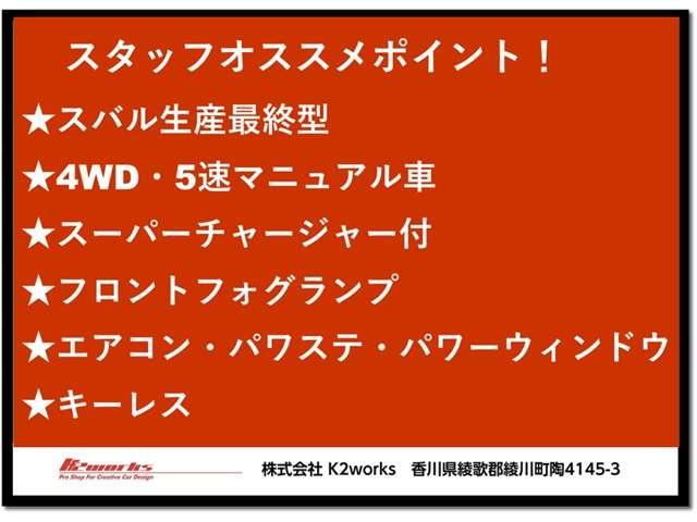 | ★スバル生産最終型★4WD★5速マニュアル車★スーパーチャージャー付き★エアコン★パワーステアリング★パワーウインドウ★純正CDデッキ★キーレス★Wエアバッグ |