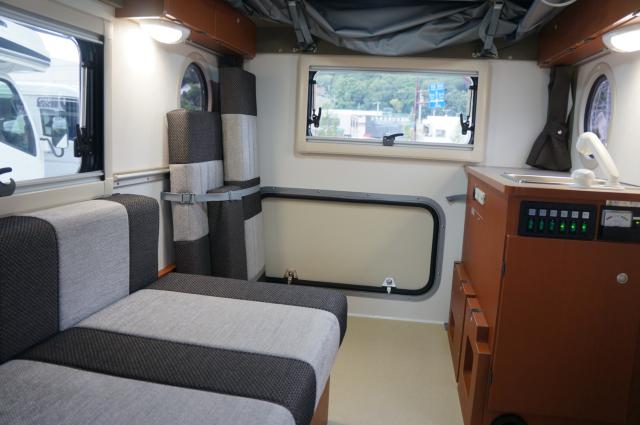 軽四自動車登録で経済性もよく、狭い道もスイスイ走れます。ポップアップルーフを採用し、上段で2名 下段で2名の就寝が可能です。