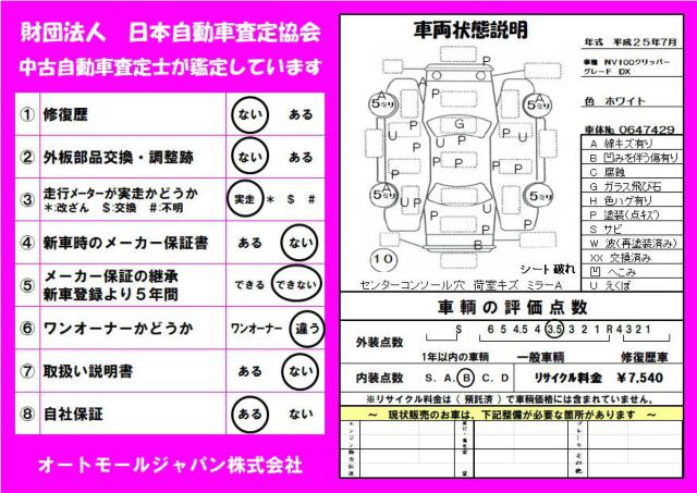 | ローダウン | - | エアロパーツ | - | 記録簿 | ○ |